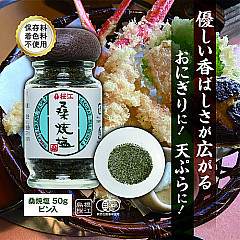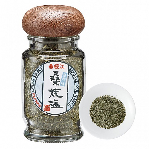 新鮮な桑の葉と伯方の焼塩をブレンドした、使いやすい瓶入りの桑焼塩です。香ばしい桑の葉の風味と、まろやかな塩味が絶妙なバランス。天ぷら、焼き魚、蒸したジャガイモなど、さまざまな料理にご利用いただけます。